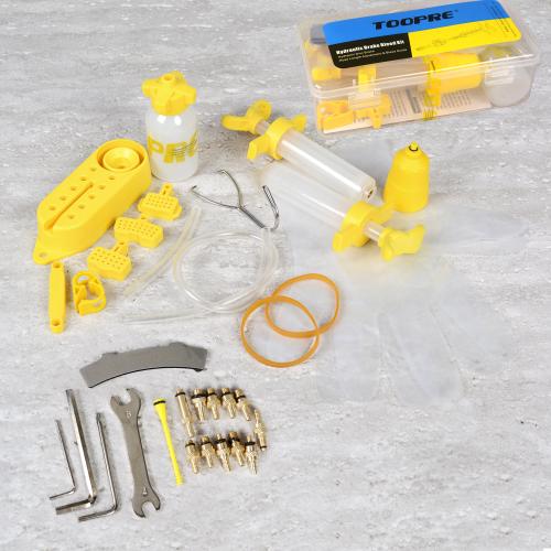 Комплект для прокачки гидравлических тормозов TOOPRE METAL XL, медные насадки с системой хранения, бутылка, маслёнка, шприц, ключи, загл /уп 50/
