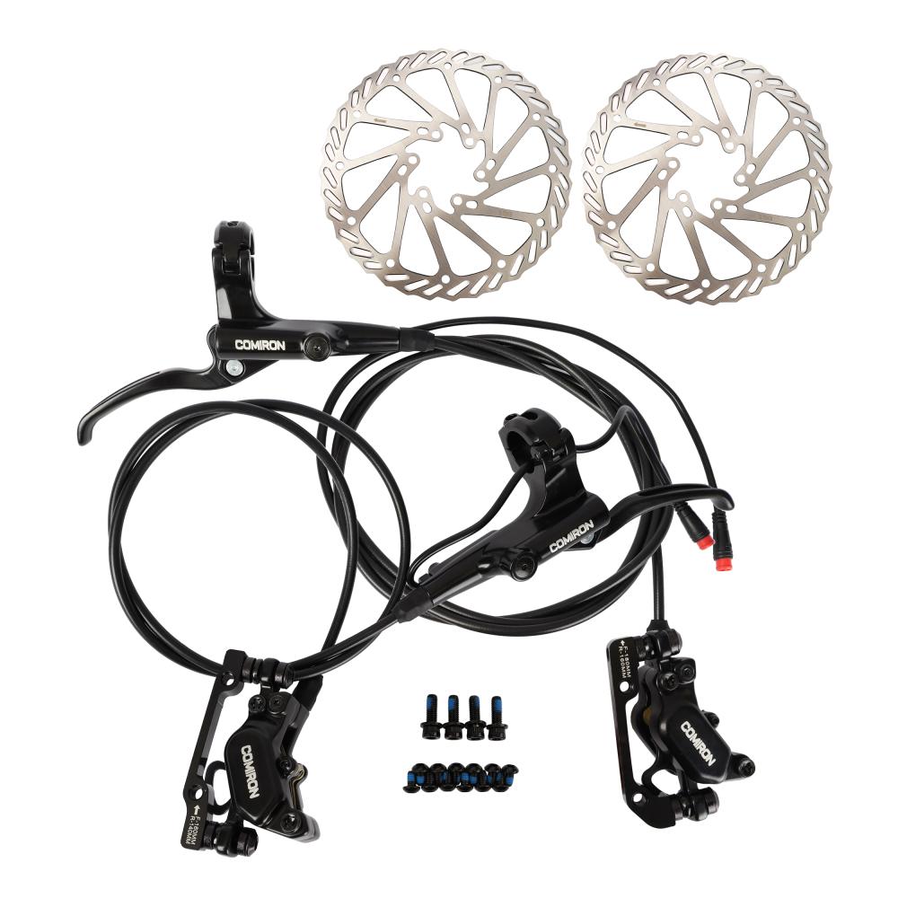 Тормозной набор дисковый гидравлический передний+задний для электробайков COMIRON HD-09E-2. 4 поршня. с ротором 160мм (TP-01E) /20/