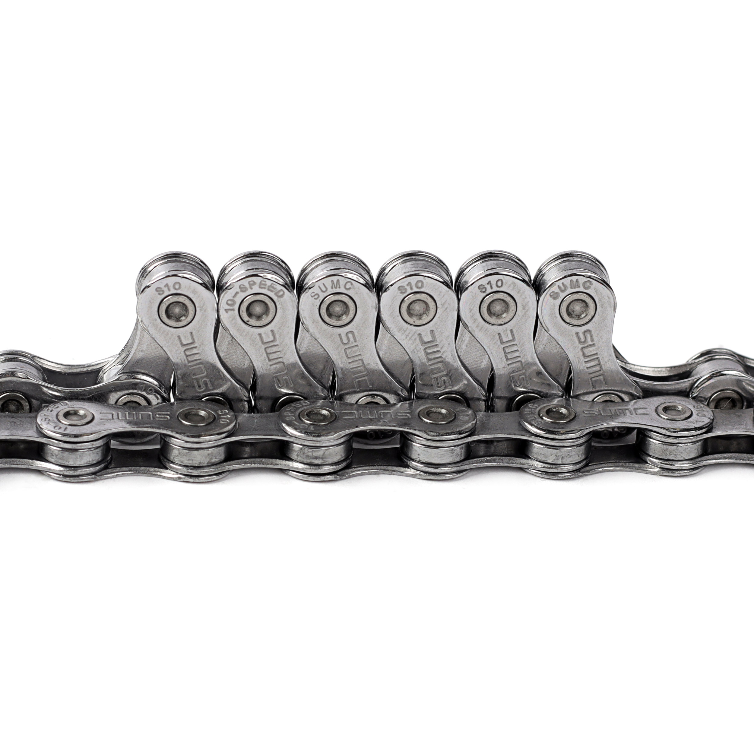 Велосипедная цепь SUMC предназначена для трансмиссий на 10 скоростей дорожных, горных и шоссейных велосипедов, имеет трубчатые втулки, прямые звенья. Размер 1/2"x11/128" 116 звеньев. Укомплектована соединительным линком. Совместима с оборудованием SHIMANO, CAMPAGNOLO, SRAM и другими. Вес 267 г.