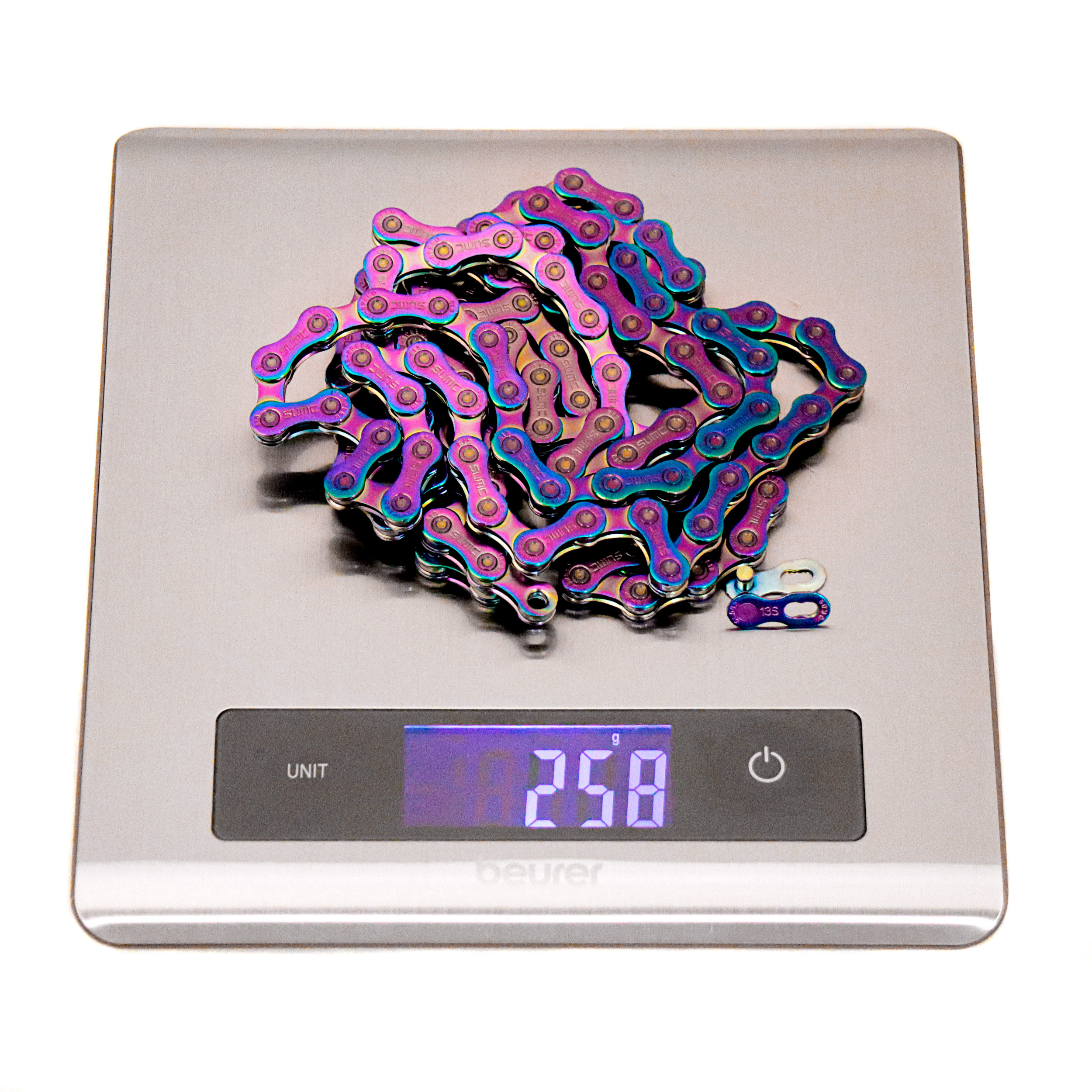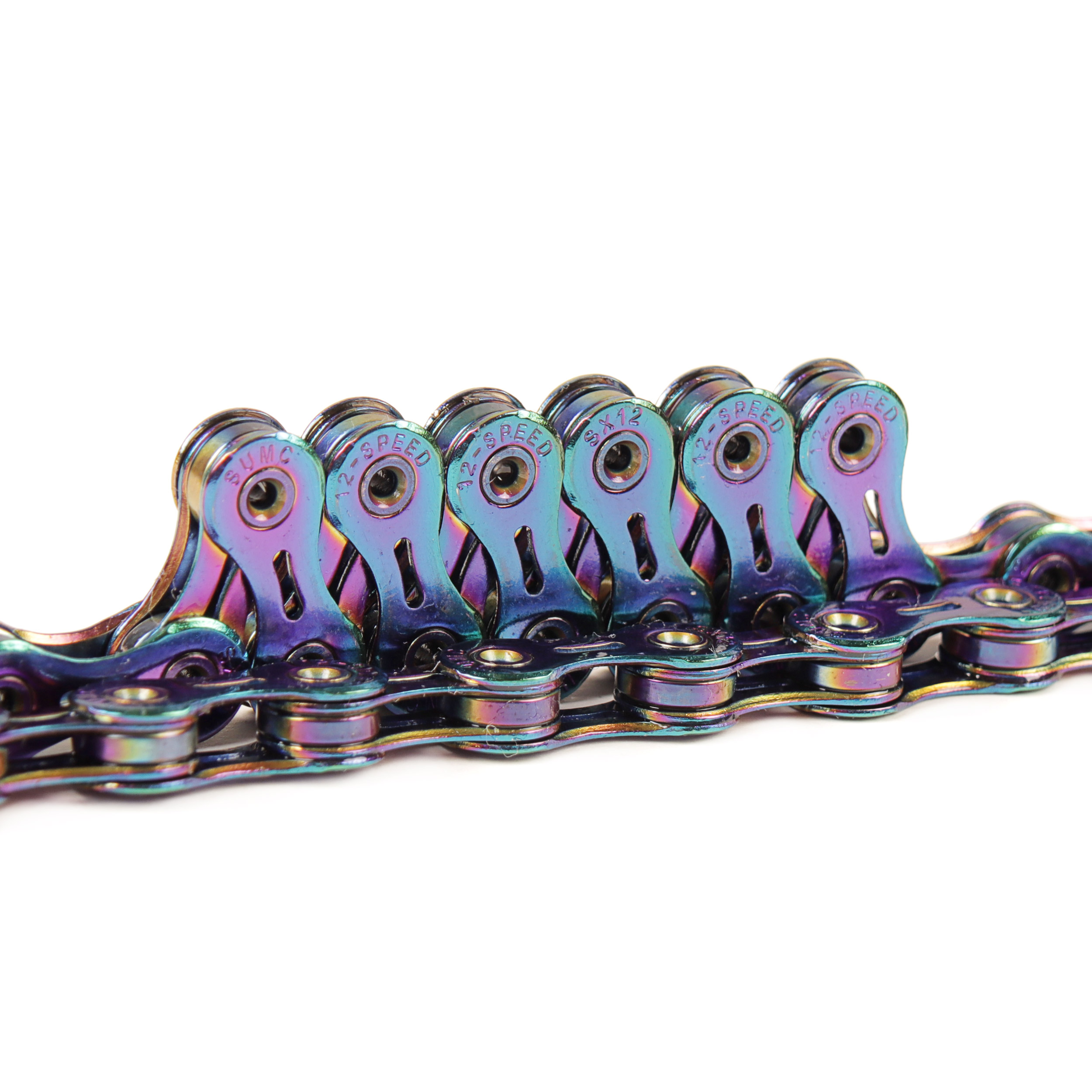 Велосипедная цепь SUMC 12 speed SX12SL RAINBOW 1/2"x11/128" 126L суперлайт 244 г (SHIMANO M9100 / KMC DLXC12) ГОСТ 30442-97 ISO 9633 /уп 25/