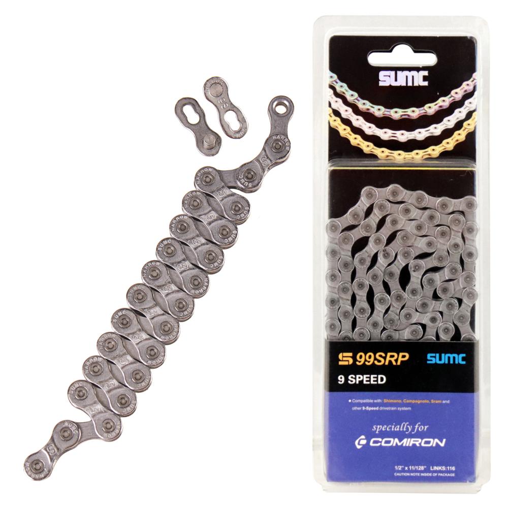 Велосипедная цепь SUMC 9 speed S99SRP 1/2"x11/128" 116L супер антикоррозионная защита 800 часов ГОСТ 30442-97 ISO 9633 /уп 50/