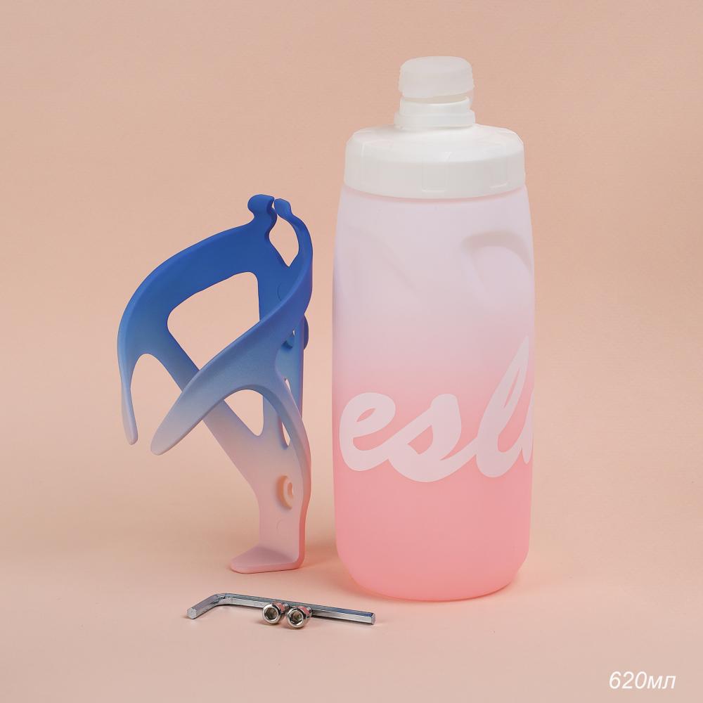 Набор бутылка для воды COMIRON ESLNF с держателем 620мл. Двухцветная с пылевой силиконовой крышкой. Розовый /уп50/