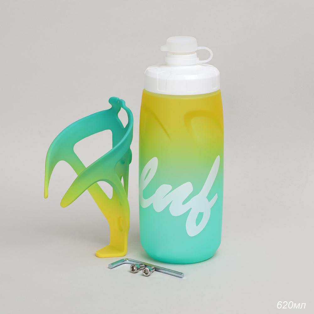Набор бутылка для воды COMIRON ESLNF с держателем 620мл. Двухцветная с пылевой силиконовой крышкой. Желтый-зеленый /уп50/