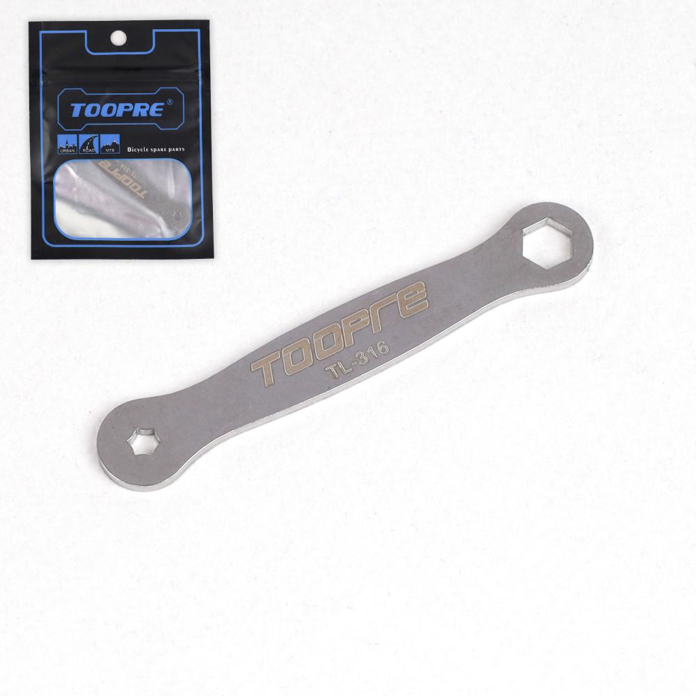 Ключ для педалей TOOPRE TL-S22. Под болты torx 3.2-3.4мм и шестигранные болты 6мм. Серебро