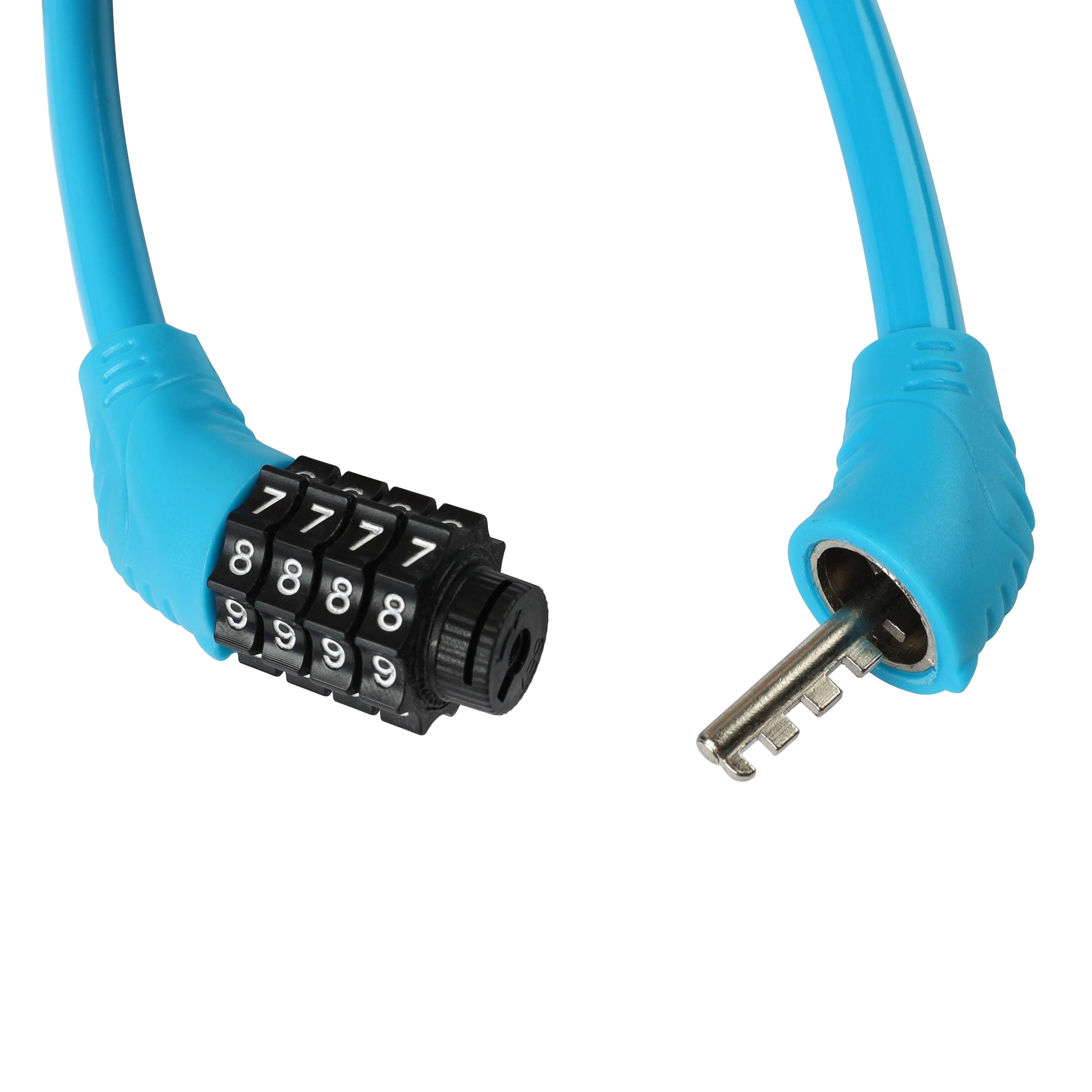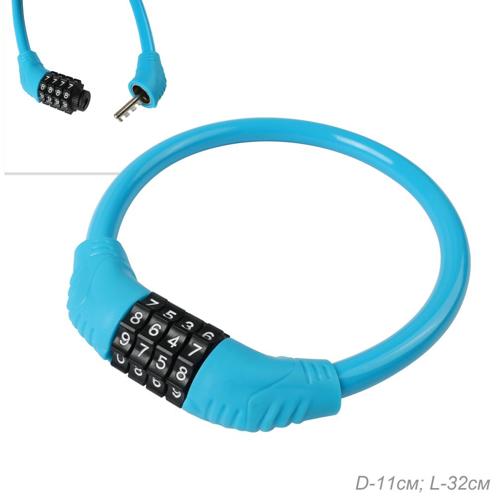 Замок тросовый кодовый KRYPTON, 4 разряда, 12х400мм, стальной трос, тактильно приятный PVC, вес 140 гр, синий /уп 100/200/