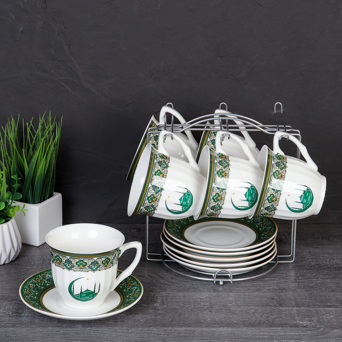 Чайный набор 12 предметов 250 мл MS / new ZSV02-12MS /уп 8/ Муслим костяной фарфор