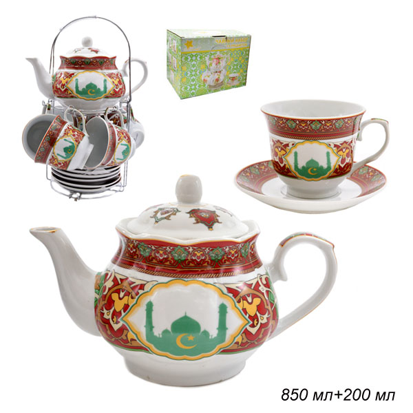 Чайный набор 13 предметов / СА-2239В /уп 6/ на металлической подставке бордо