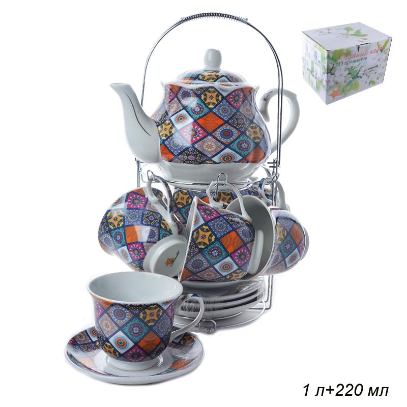 Чайный набор 13 предметов Восточный Орнамент / СS-2239В S/13 /уп 6/ мет.подставка
